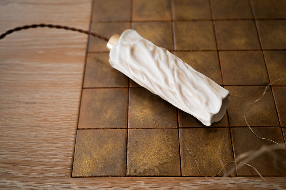 陶器と真鍮のペンダントライトを製作しました。